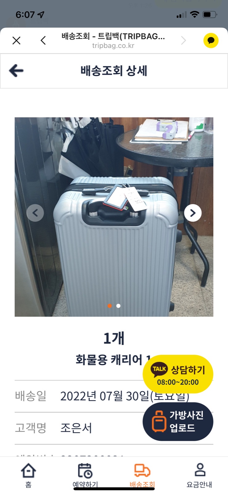 배송 완료시 사진도 보내주시니 숙소에 보관할 경우 잘 됐는지 확인할수있어 안심이에요